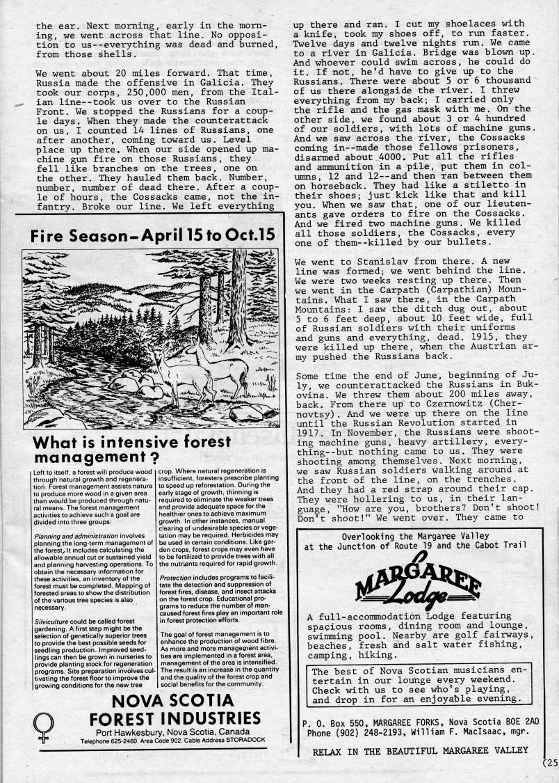 Ronald Caplan interviewed Kris Mayich for the Cape Breton Magazine about his experiences in WWI.